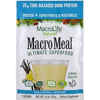 Macrolife Naturals, MacroRefeição, Superalimento Definitivo, Proteína de Baunilha + Superalimentos, 1,4 oz (40 g)