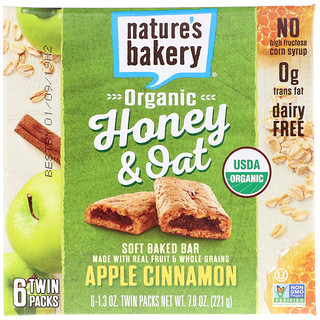 Nature's Bakery, Barras Orgânicas Honey & Oat, Barra Macia, Maçã e Canela, 6 Pacotes com 2, 1,3 oz (36 g) Cada