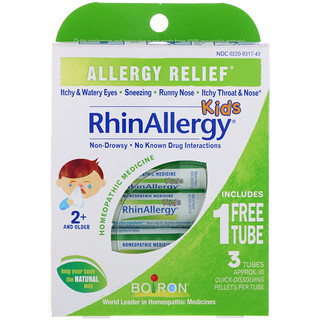 Boiron, Kids, RhinAllergy, 3 Tubes, 80 Quick-Dissolving Pellets Each